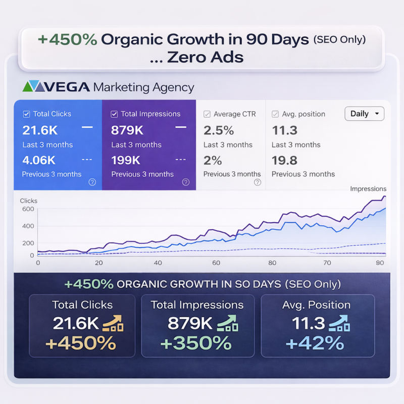 Achieved 432% growth in clicks and 342% increase in impressions in just 90 days - SEO only, zero ads.